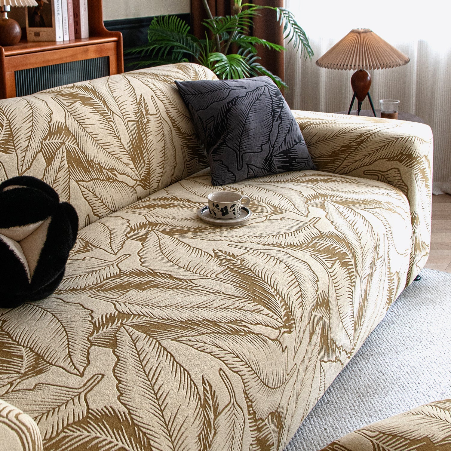Dual Tone Knitting Jacquard Sofa Cover 1/2/3 Seater Fully Covered - Beige