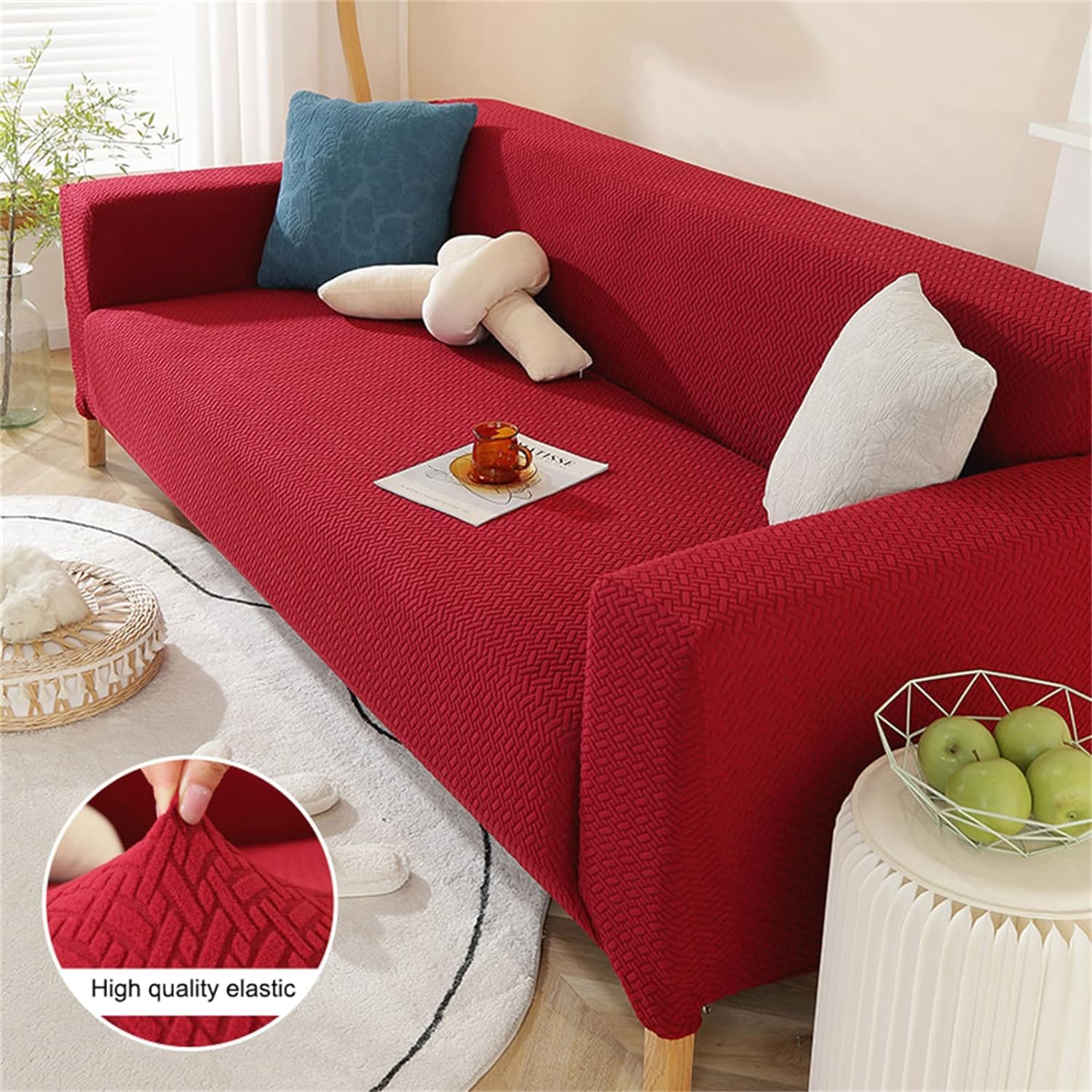 High-density stretch fabric with elastic corners provides a perfect wrinkle-free fitting as the cover will not move easily like any traditional couch cover.