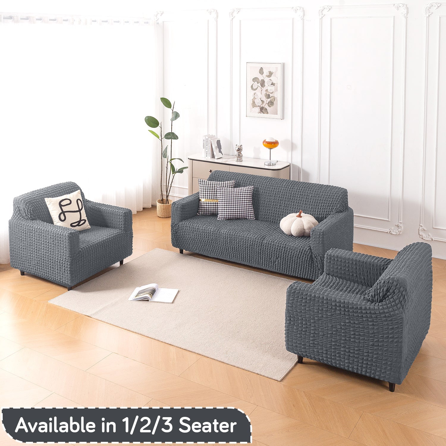 Aria Nova Elastic 280 GSM Stretchable Bubble Sofa Cover, Dark Grey