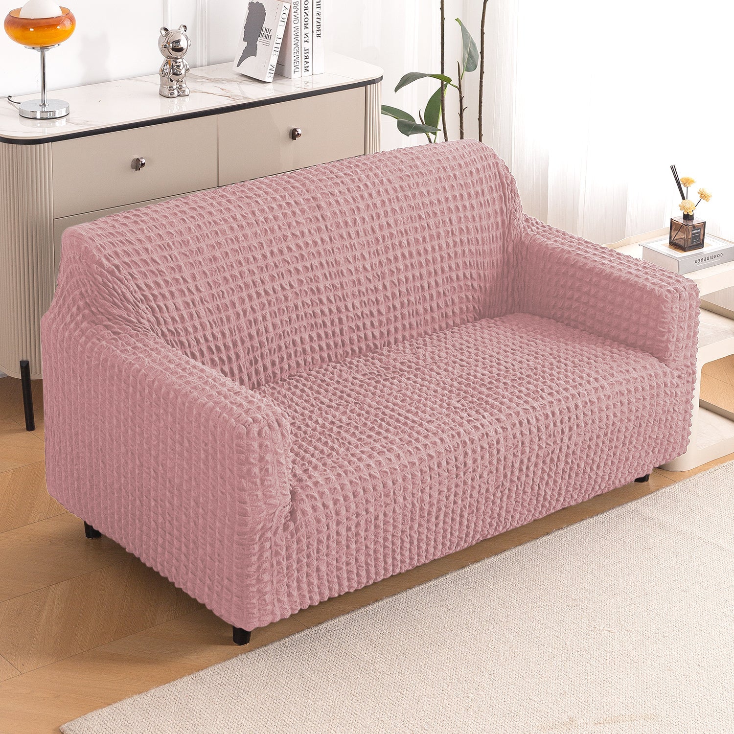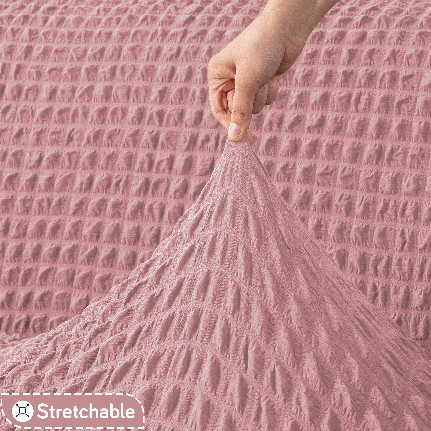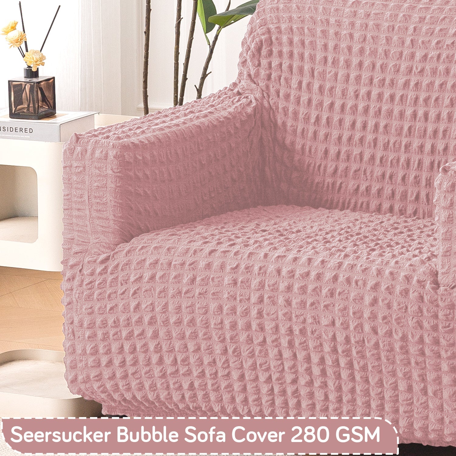 Aria Nova Elastic 280 GSM Stretchable Bubble Sofa Cover, Tea Rose Pink