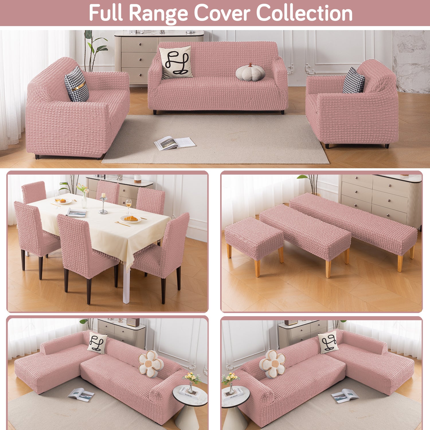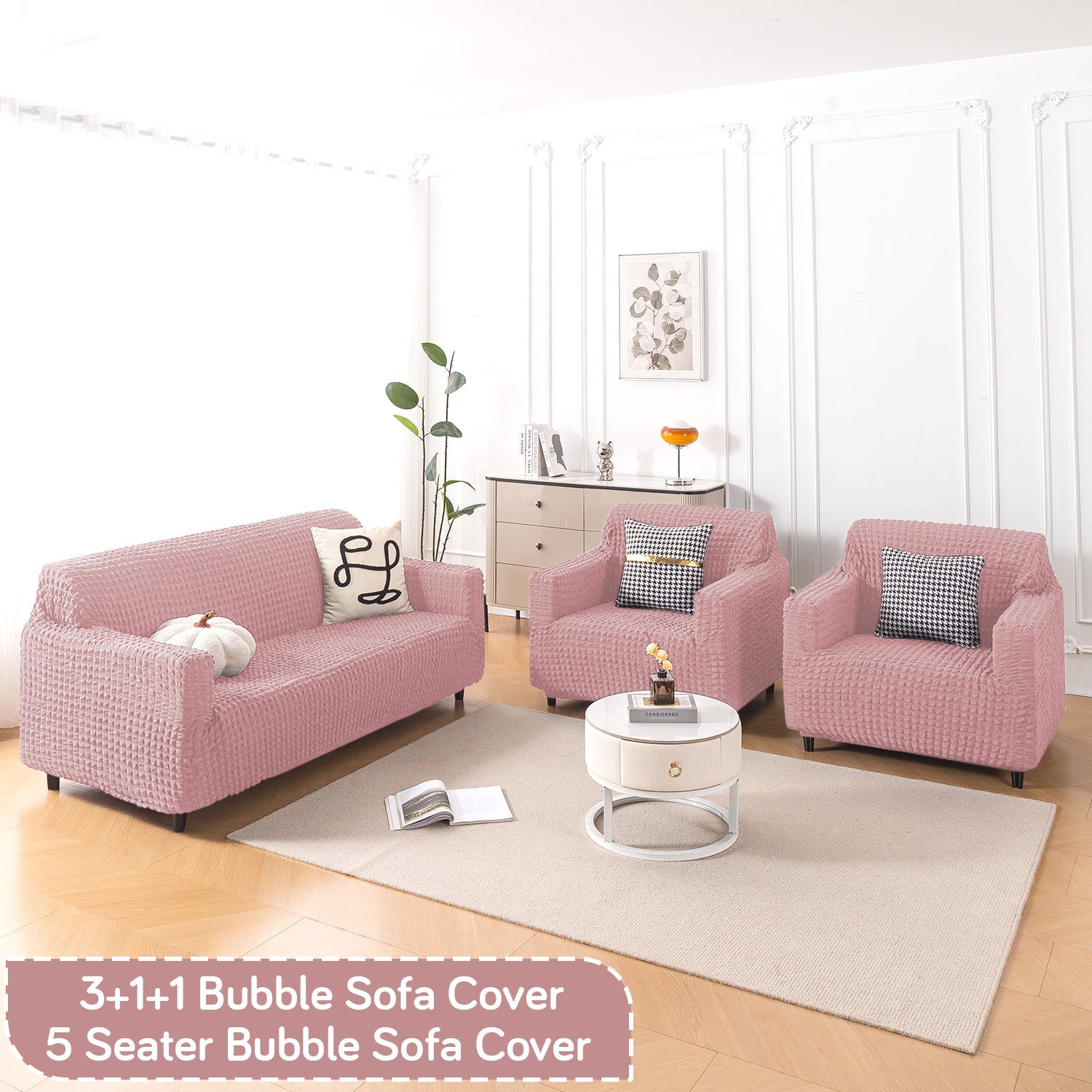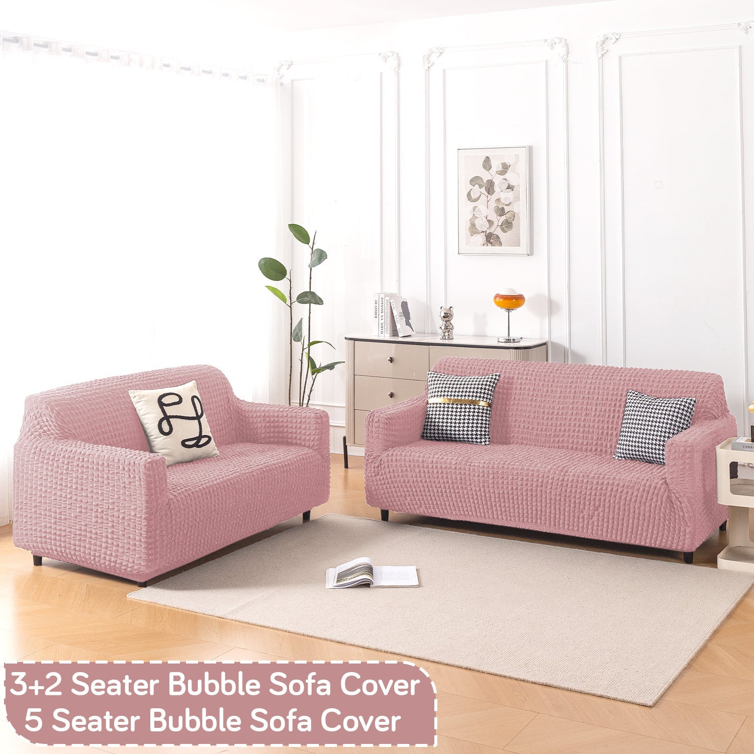 Aria Nova Elastic 280 GSM Stretchable Bubble Sofa Cover, Tea Rose Pink