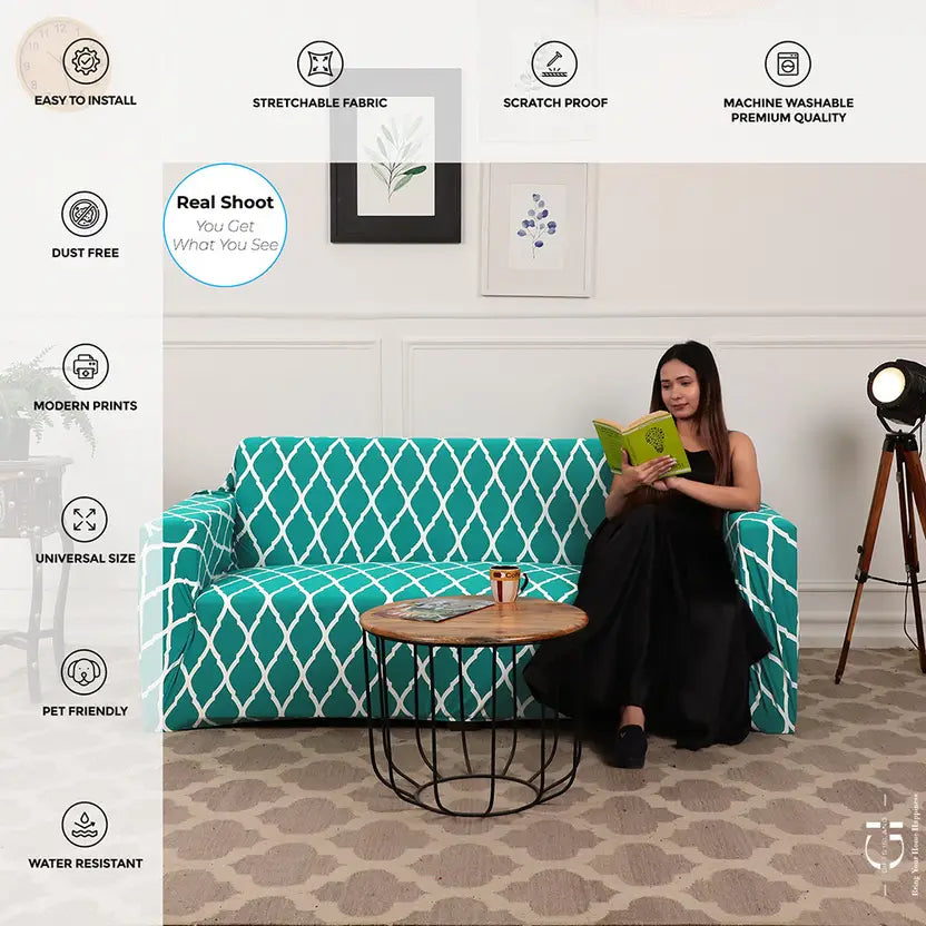 Teal Blue Diamond - Luxury Quality Strechable & Dust-proof Sofa Cover
