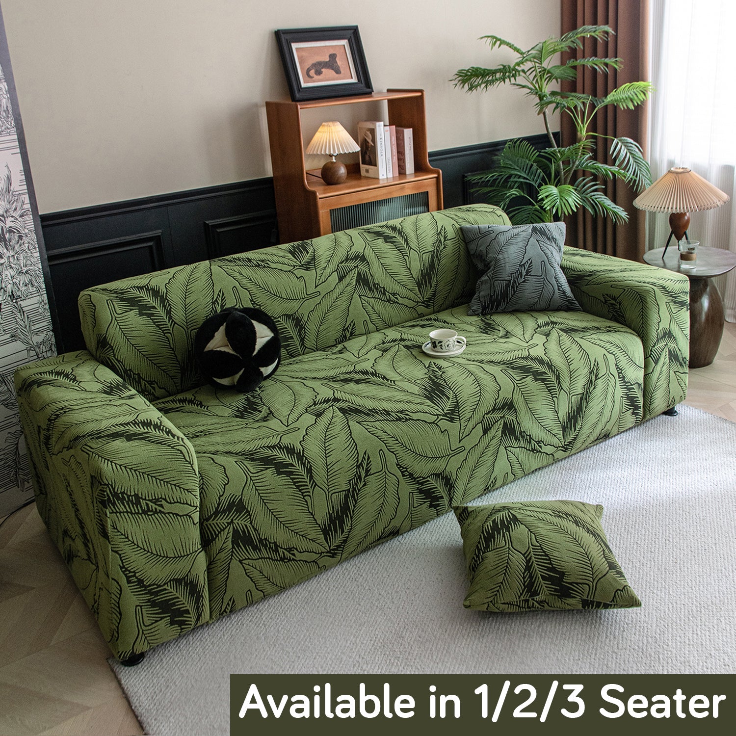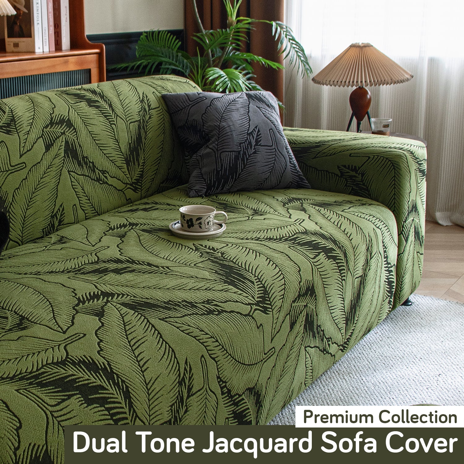 Dual Tone Knitting Jacquard Sofa Cover 1/2/3 Seater Fully Covered - Olive Green