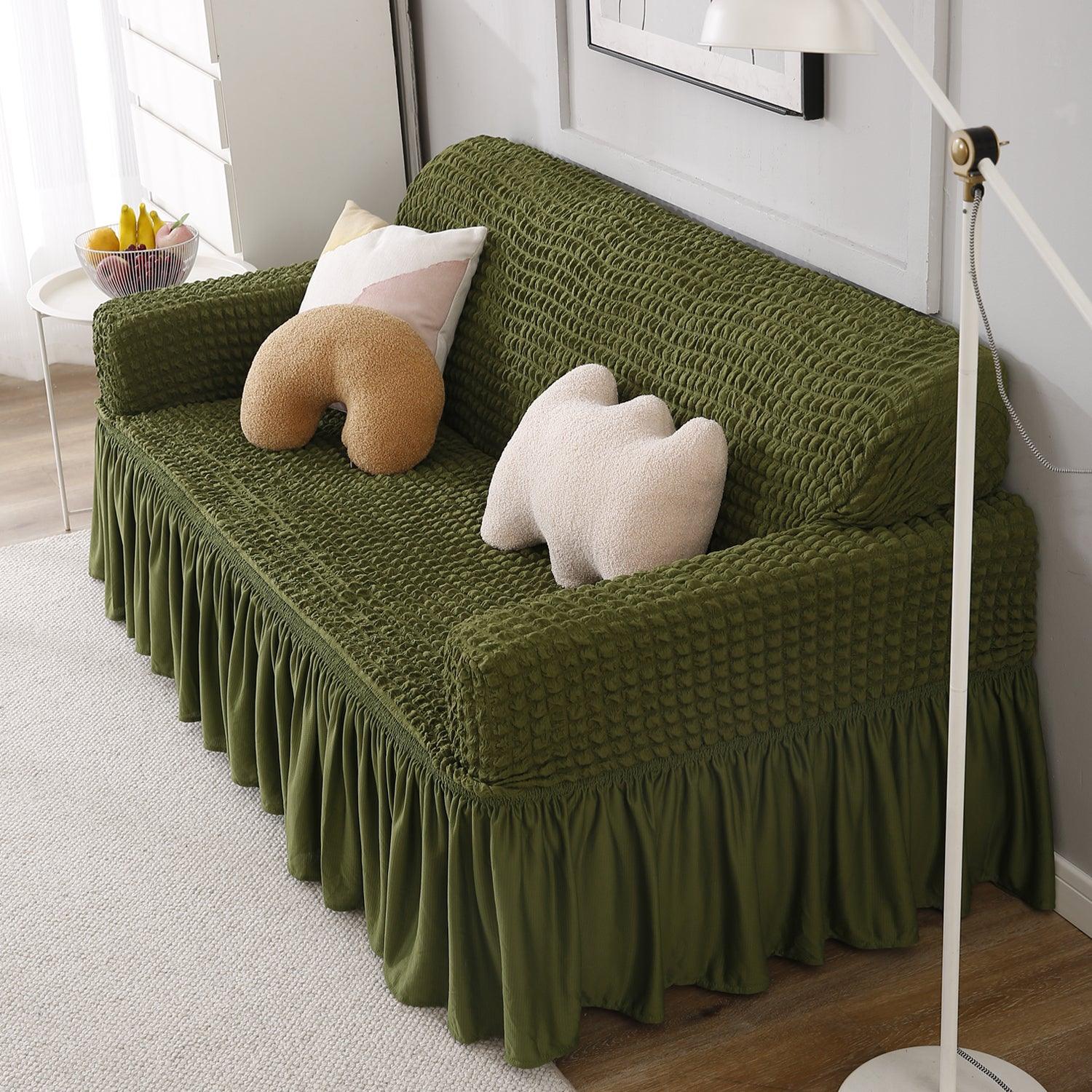 Elastic Stretchable Bubble 280 GSM Sofa Cover with Frill, Forest Green