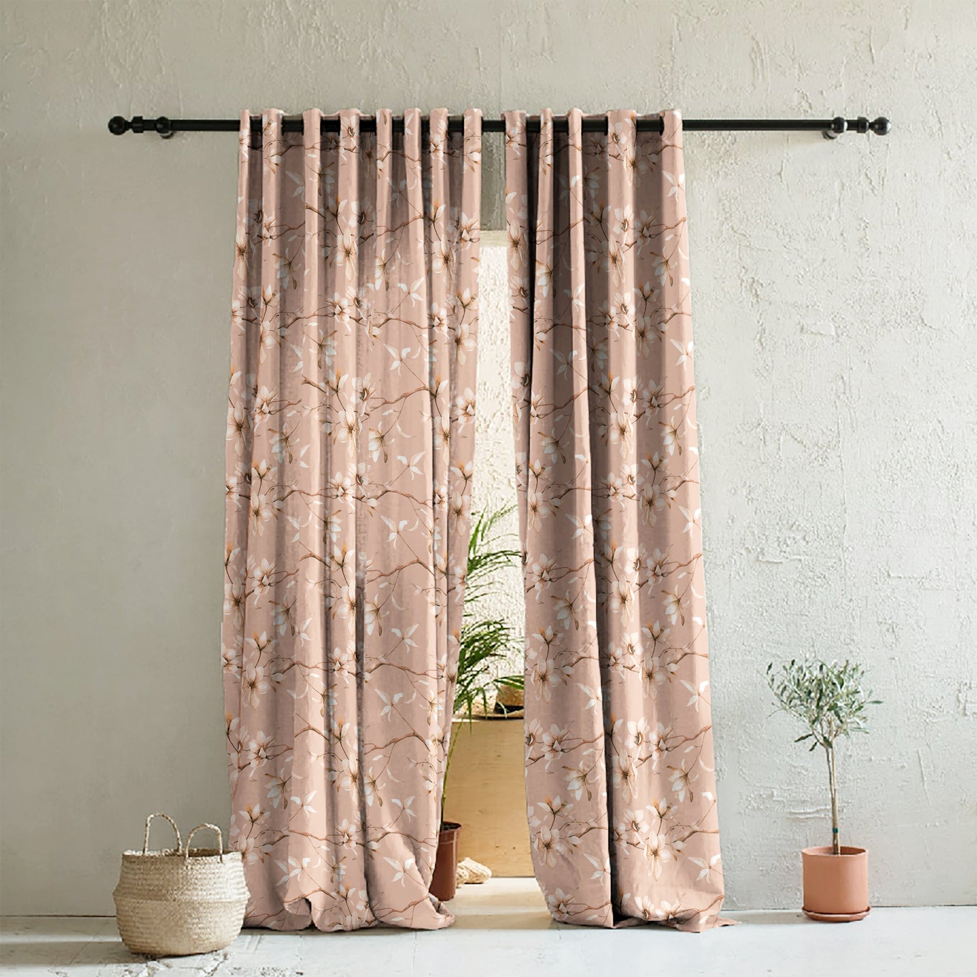 Shop our blossoming vines floral curtain in peach pink online at Drape Story. These are room darkening curtains, available for all window & door sizes.