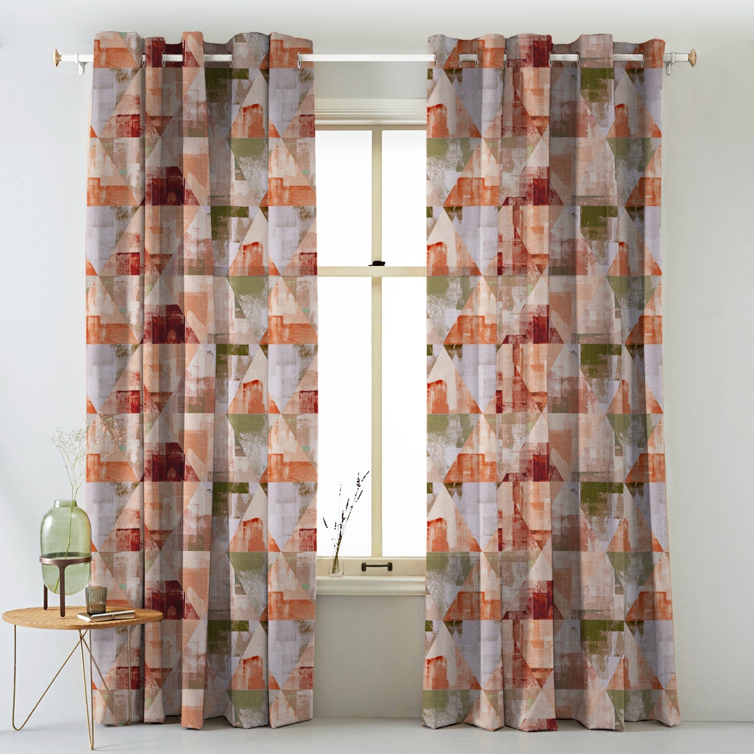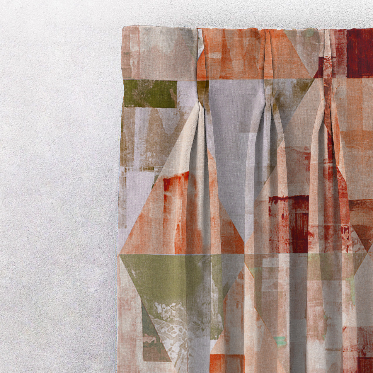 Shop our geometric fusion geometric curtain in orange online at Drape Story. These are room darkening curtains, available for all window & door sizes.