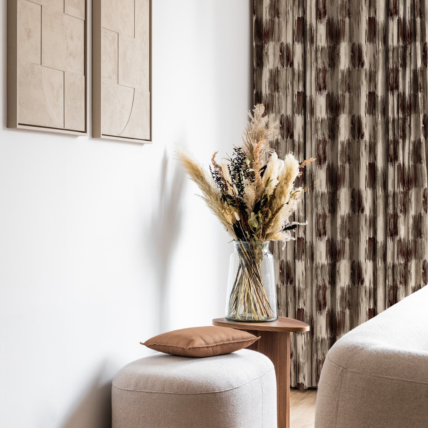 Shop our chromatic delights geometric curtain in chocolate online at Drape Story. These are room darkening curtains, available for all window & door sizes.