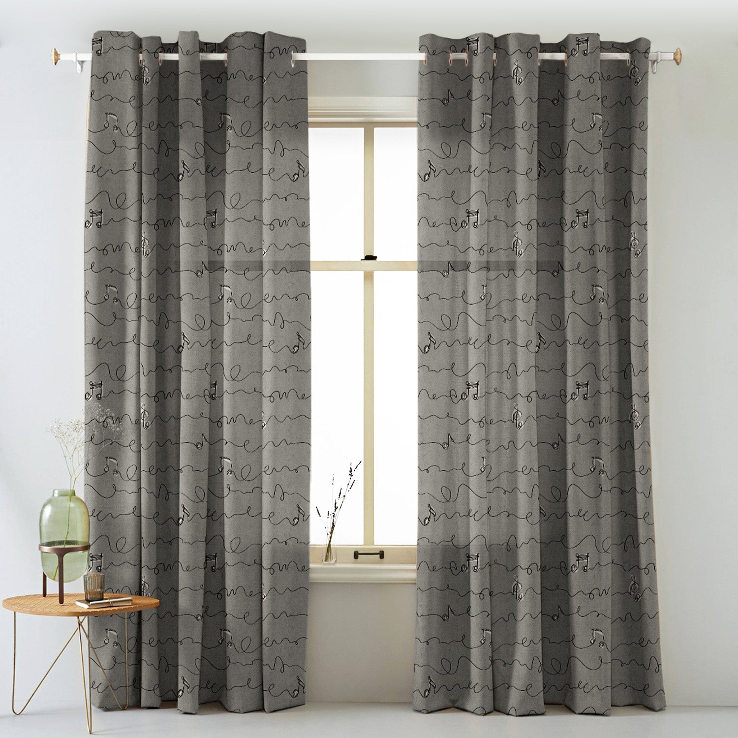 Shop our musical medley geometric curtain in metal grey online at Drape Story. These are room darkening curtains, available for all window & door sizes.