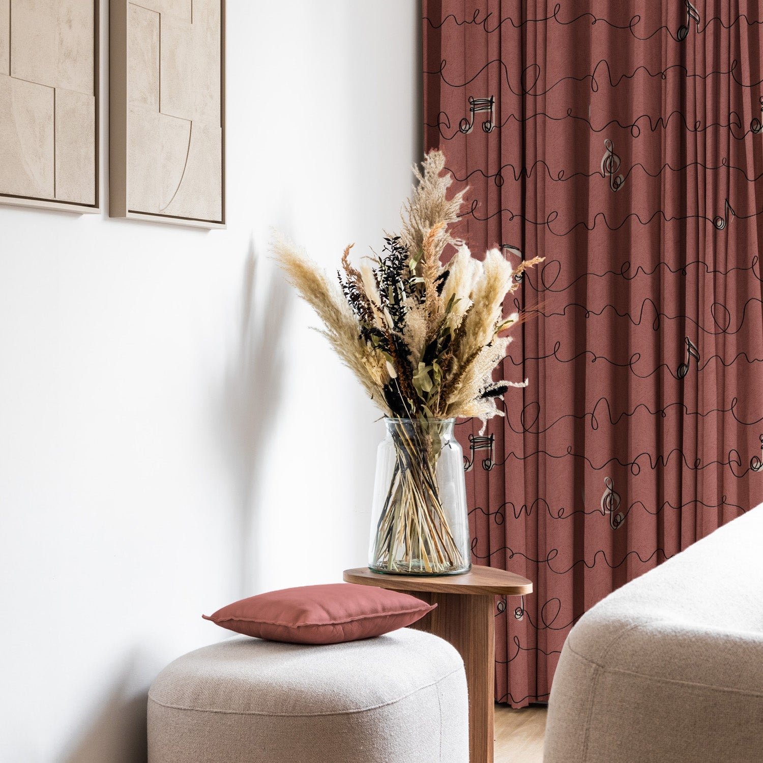 Shop our musical medley geometric curtain in maroon online at Drape Story. These are room darkening curtains, available for all window & door sizes.