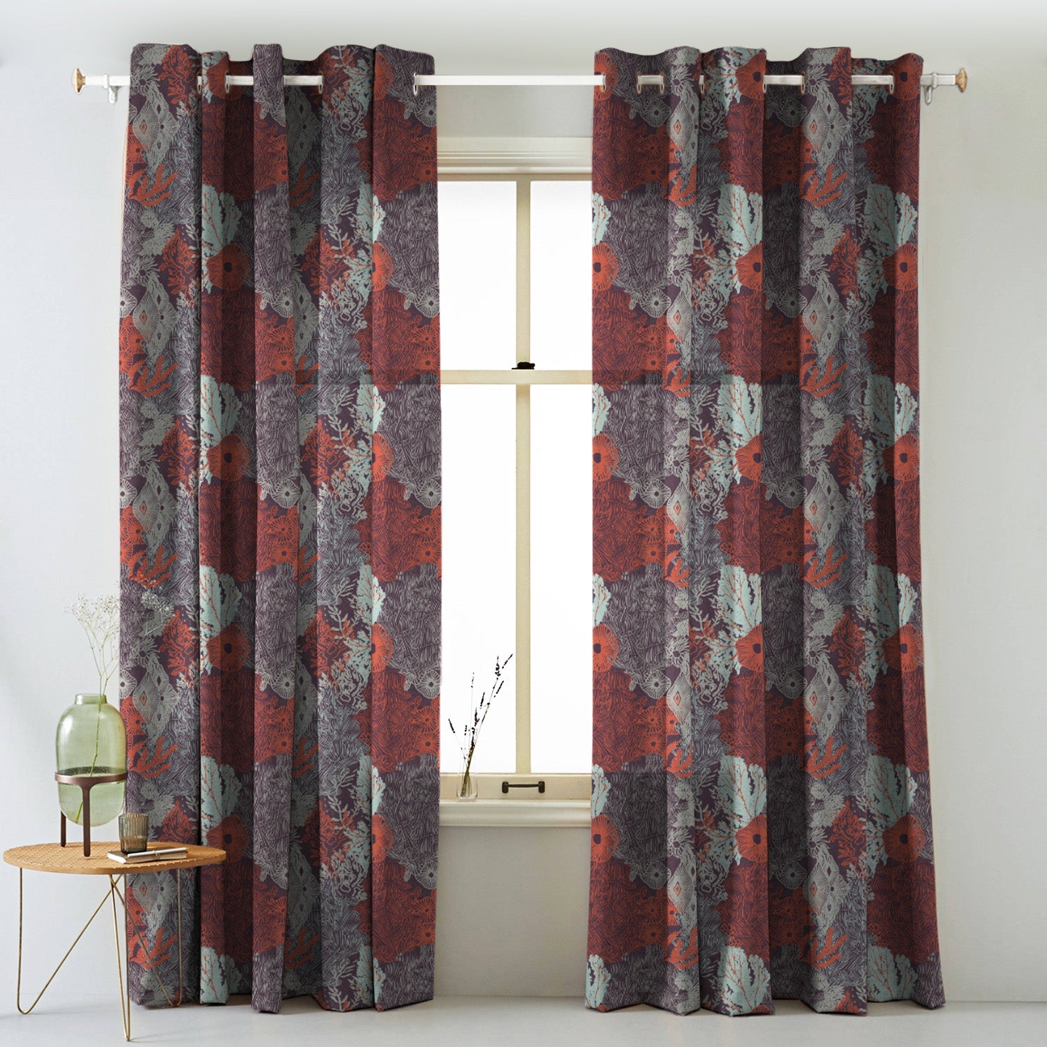 Shop our coral geometric curtain in wine online at Drape Story. These are room darkening curtains, available for all window & door sizes.