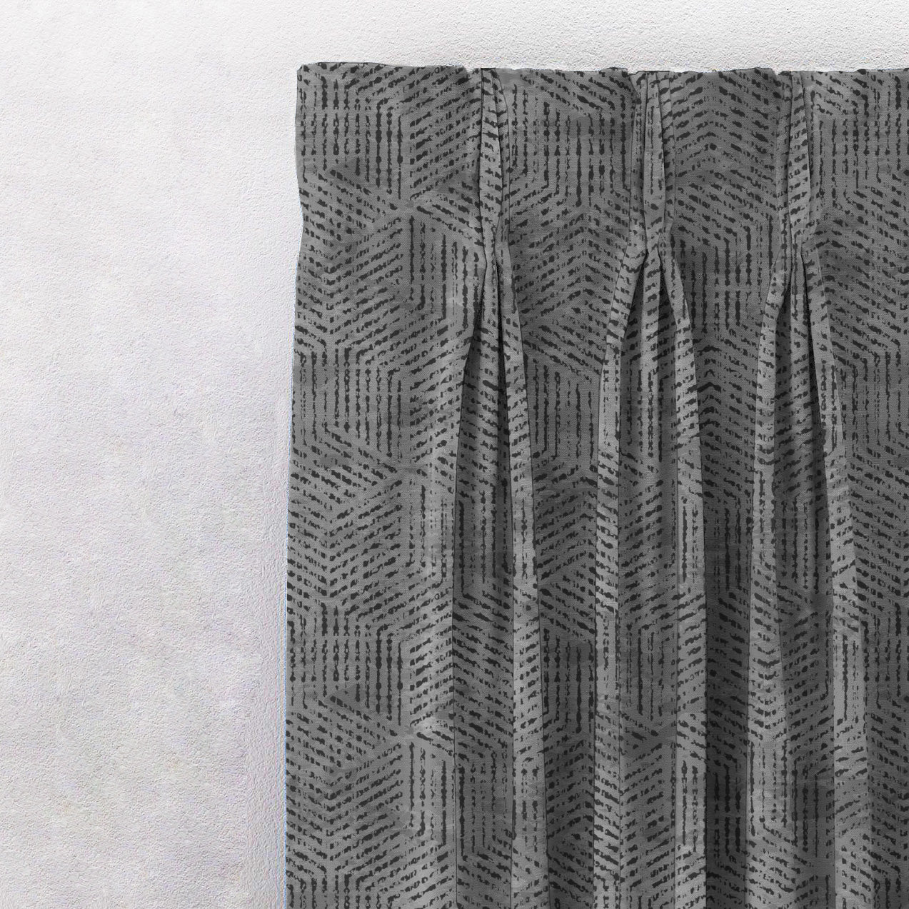 Shop our brokenhive geometric curtain in ash grey online at Drape Story. These are room darkening curtains, available for all window & door sizes.