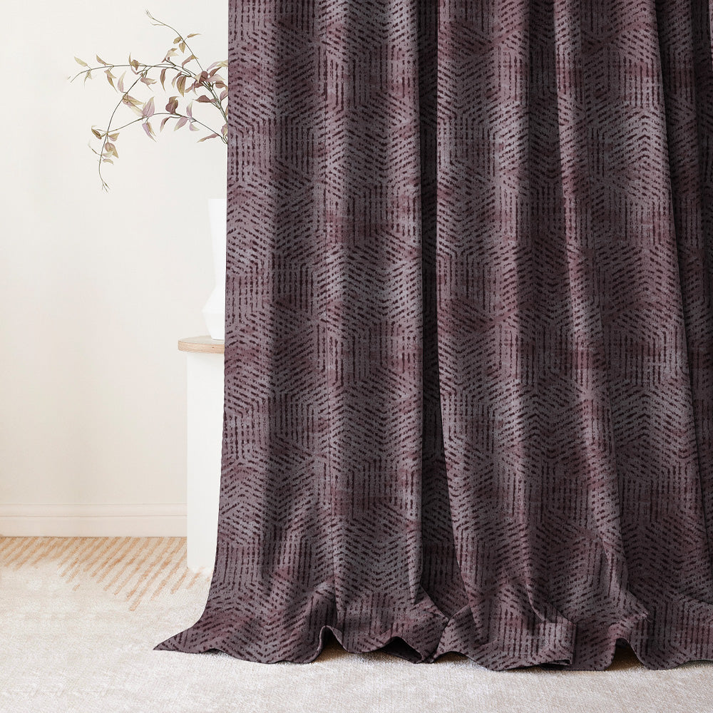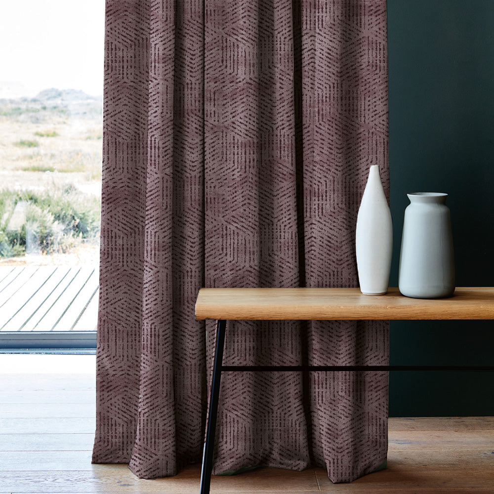 Shop our brokenhive geometric curtain in wine red online at Drape Story. These are room darkening curtains, available for all window & door sizes.