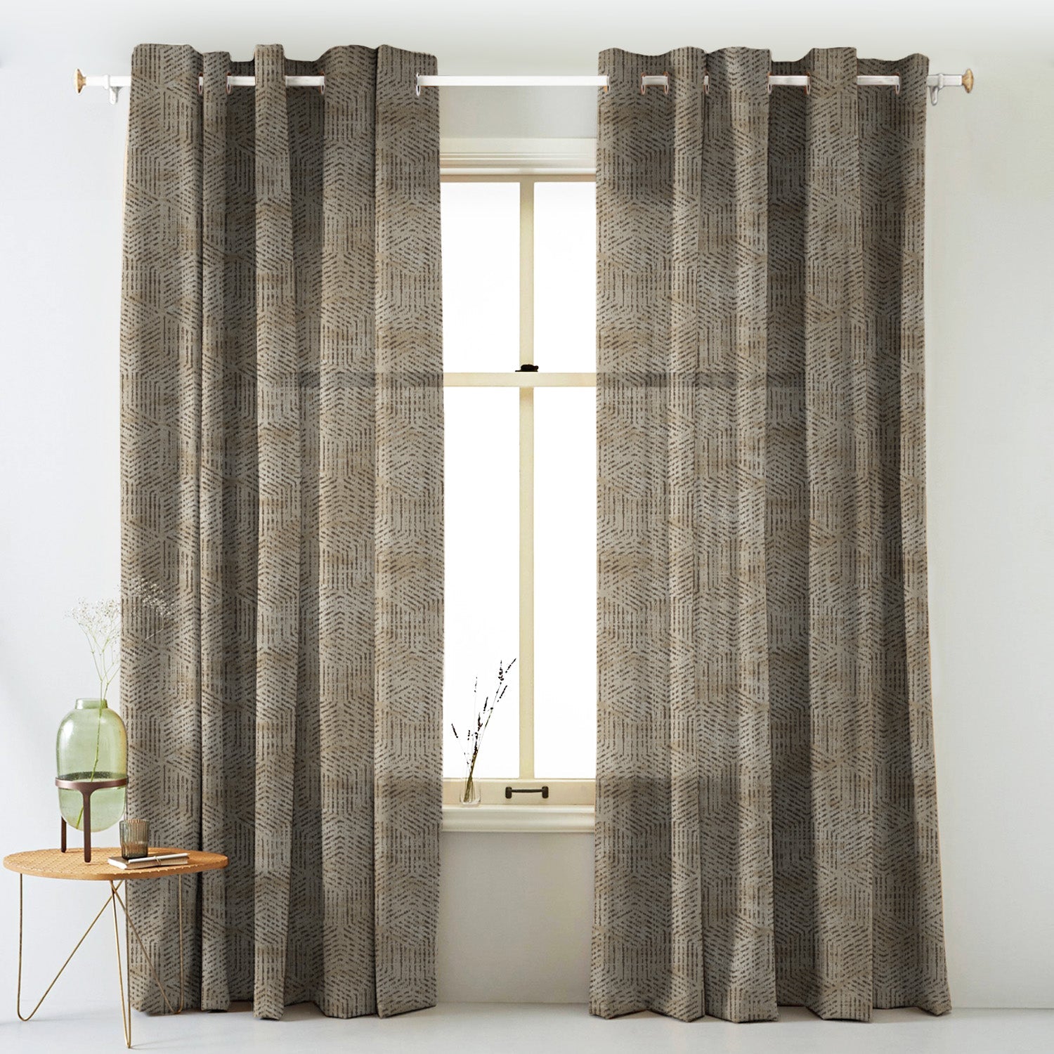 Shop our brokenhive geometric curtain in beige online at Drape Story. These are room darkening curtains, available for all window & door sizes.