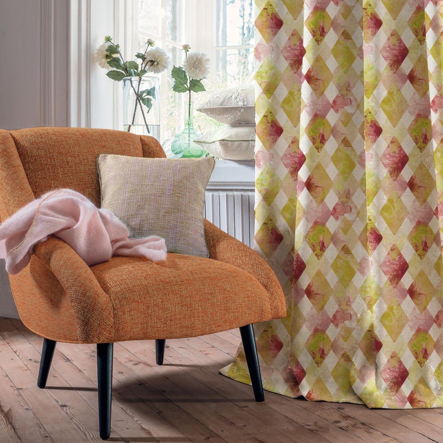 Shop our jewel tones geometric curtain in mustard yellow online at Drape Story. These are room darkening curtains, available for all window & door sizes.