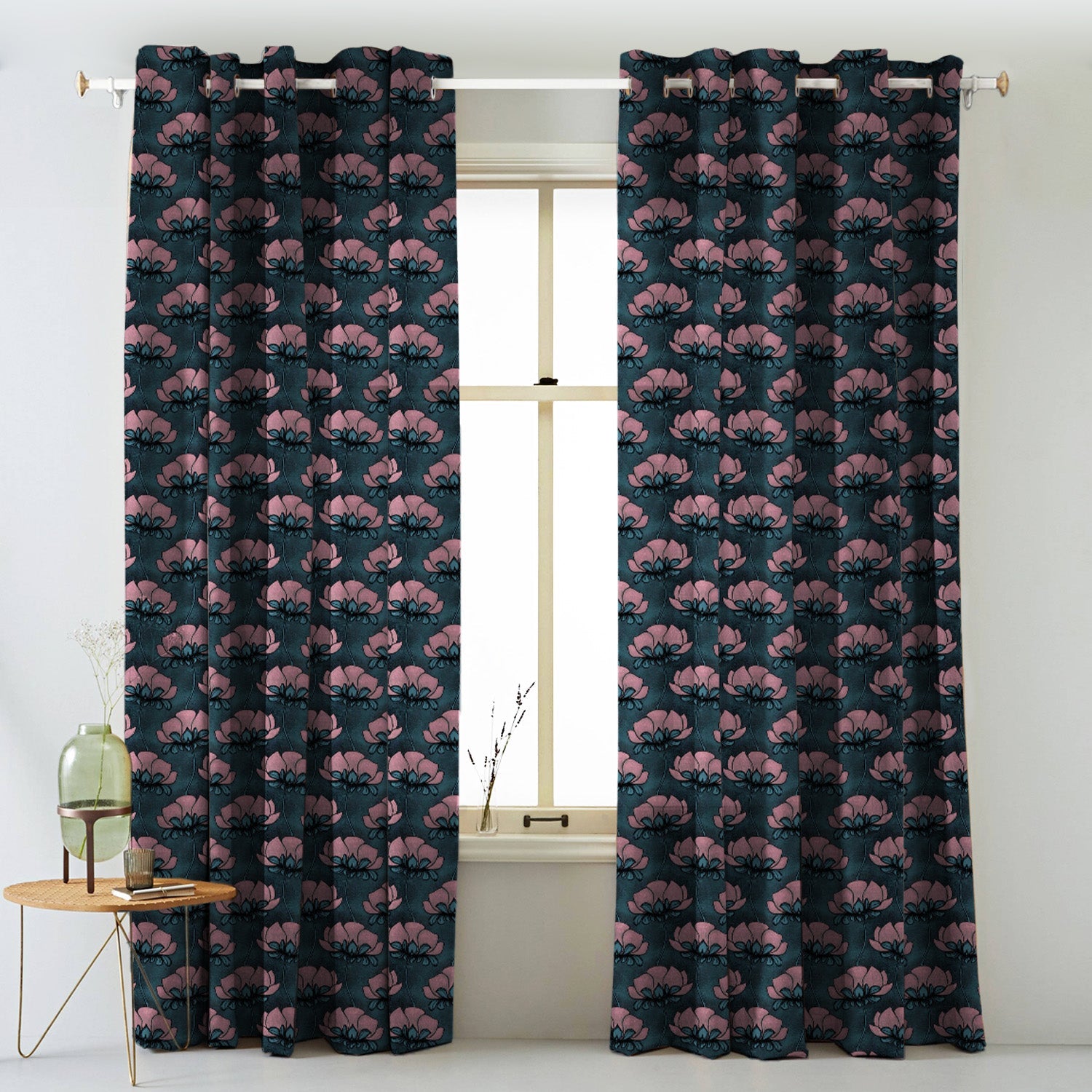 Shop our lotus majesty indie curtain in baby pink online at Drape Story. These are room darkening curtains, available for all window & door sizes.