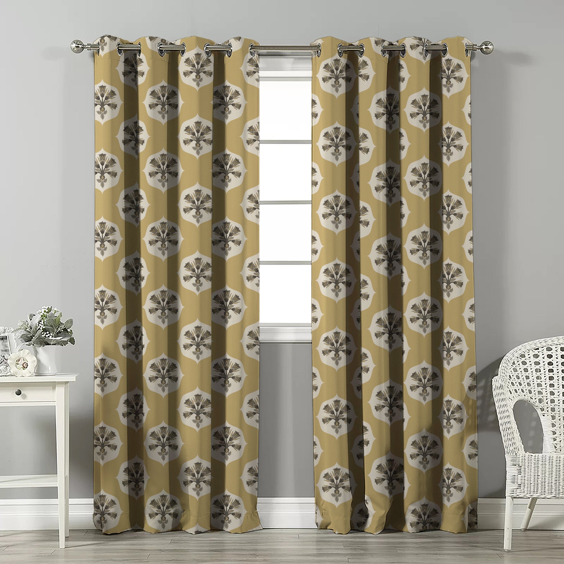 Ethnic Charm Indie Mustard Yellow Velvet Room Darkening Curtains Set Of 2 - (DS543D)