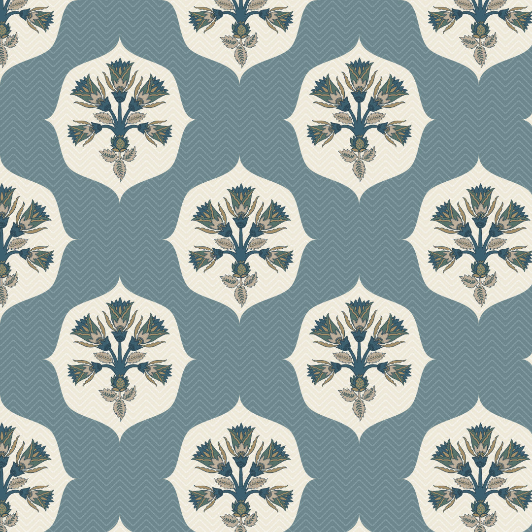 Ethnic Charm Indie Ocean Blue Velvet Room Darkening Curtains Set Of 2 - (DS543B)