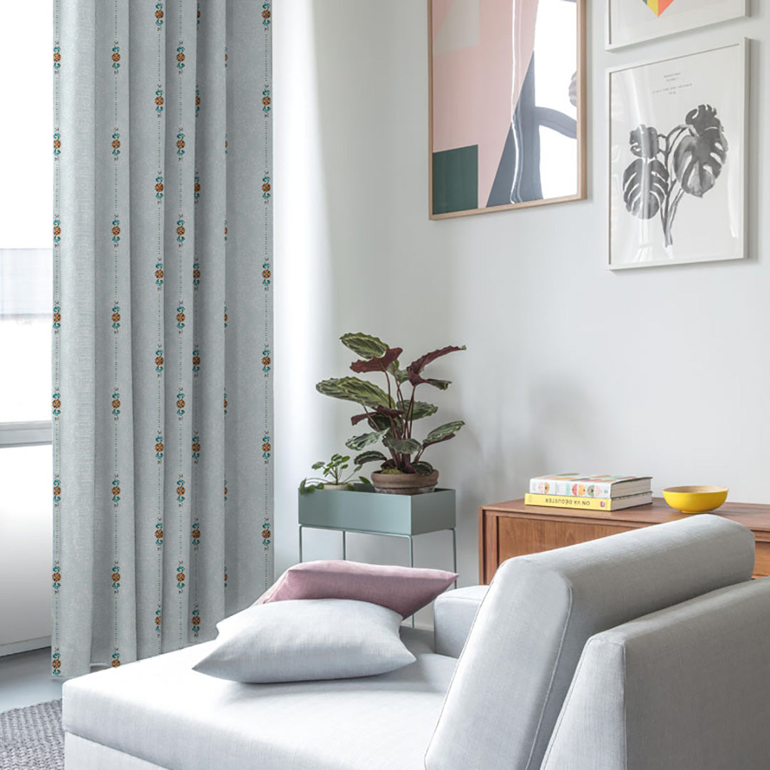 Shop our ethnic essence floral curtains in sky blue online at Drape Story, These are heavy satin curtains available for all door & window sizes.