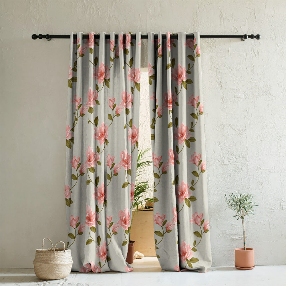 Shop our floral curtains flock floral curtains in soft pink online at Drape Story, These are heavy satin curtains available for all door & window sizes.