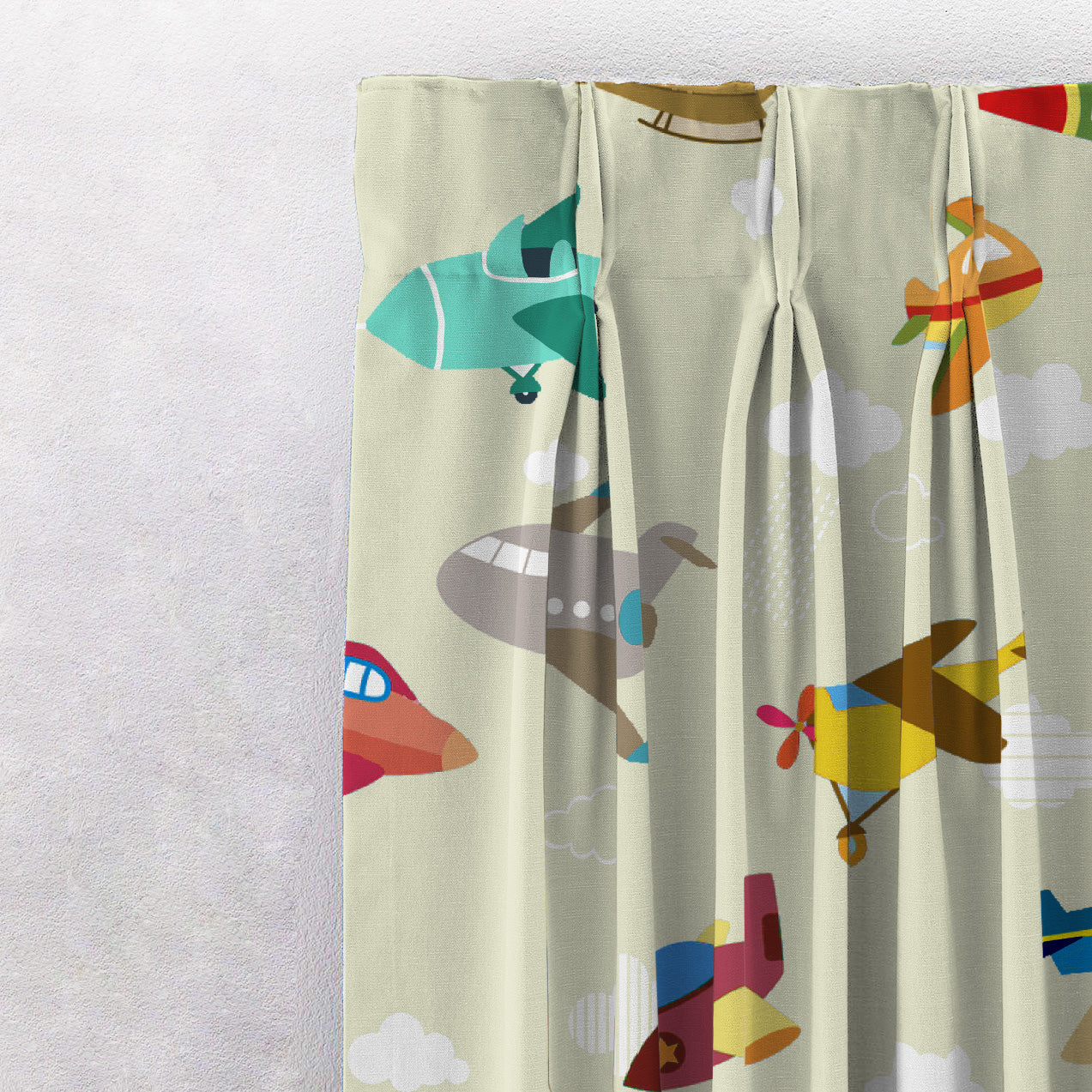 Shop our fly high kids curtains in champagne beige online at Drape Story, These are heavy satin curtains available for all door & window sizes.