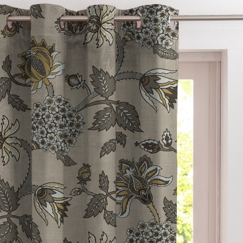 Garden Charm Floral Tan Velvet Room Darkening Curtains Set Of 2 - (DS542E)