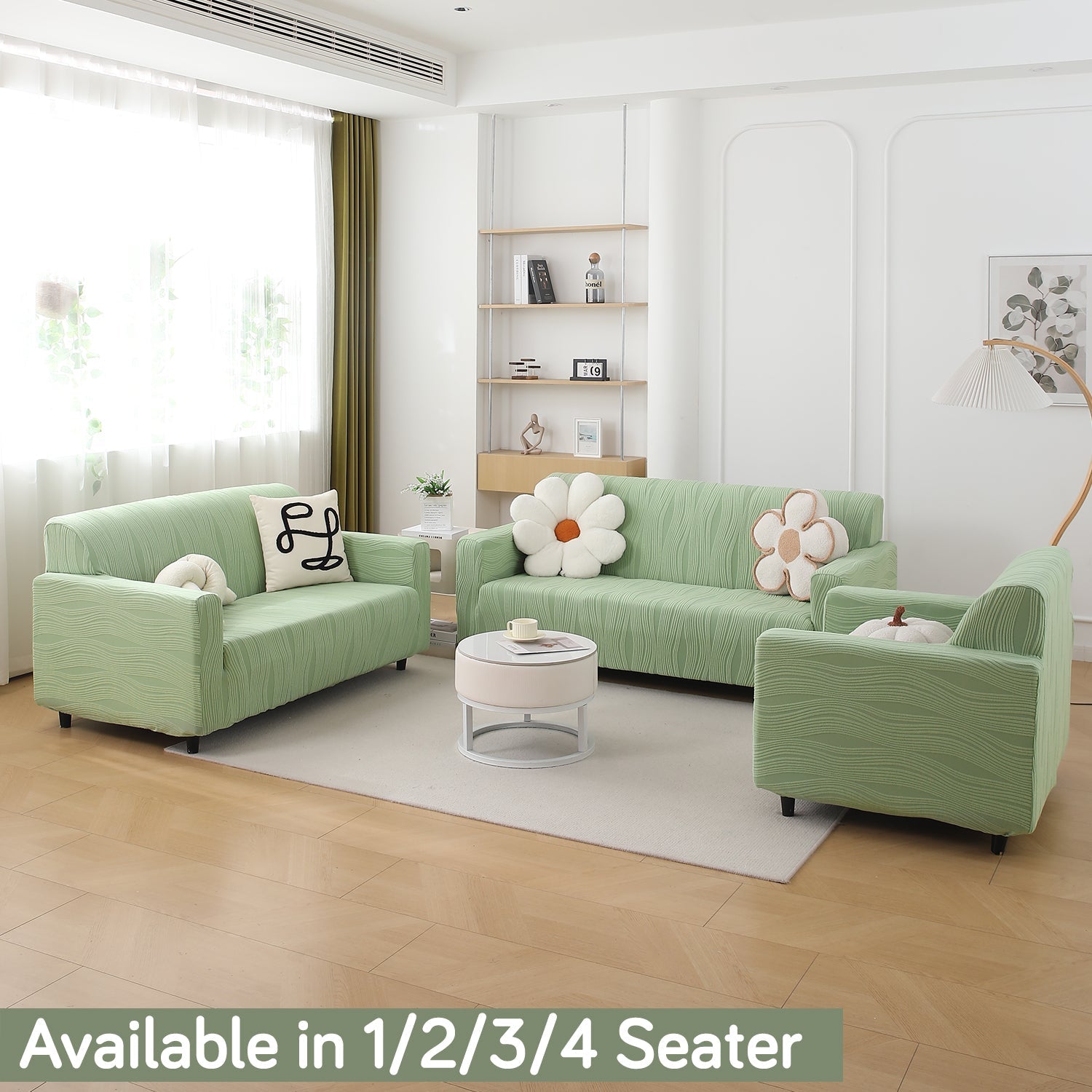 200gsm Knitting Jacquard Sofa Cover 1/2/3/4 Seater Fully Covered, Pastel Green