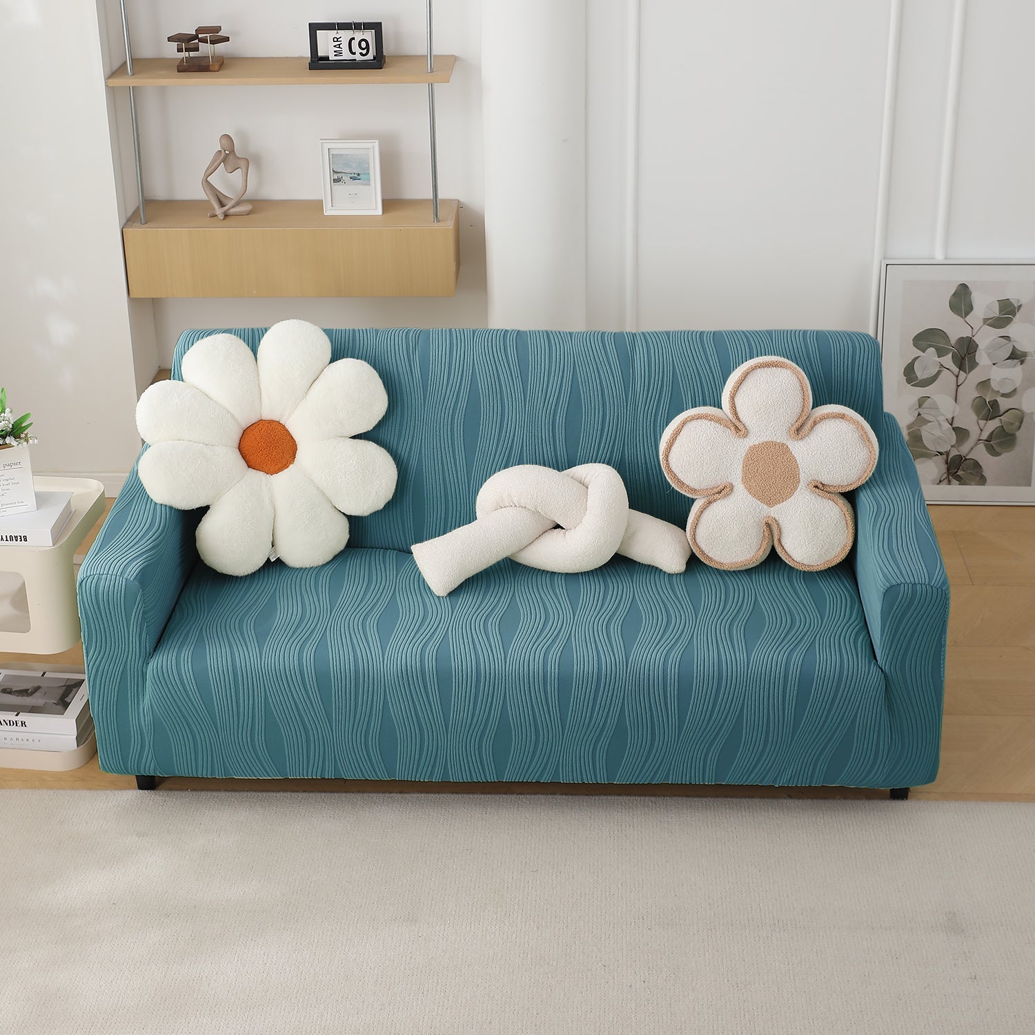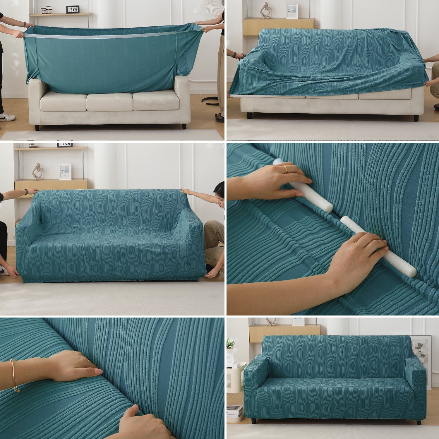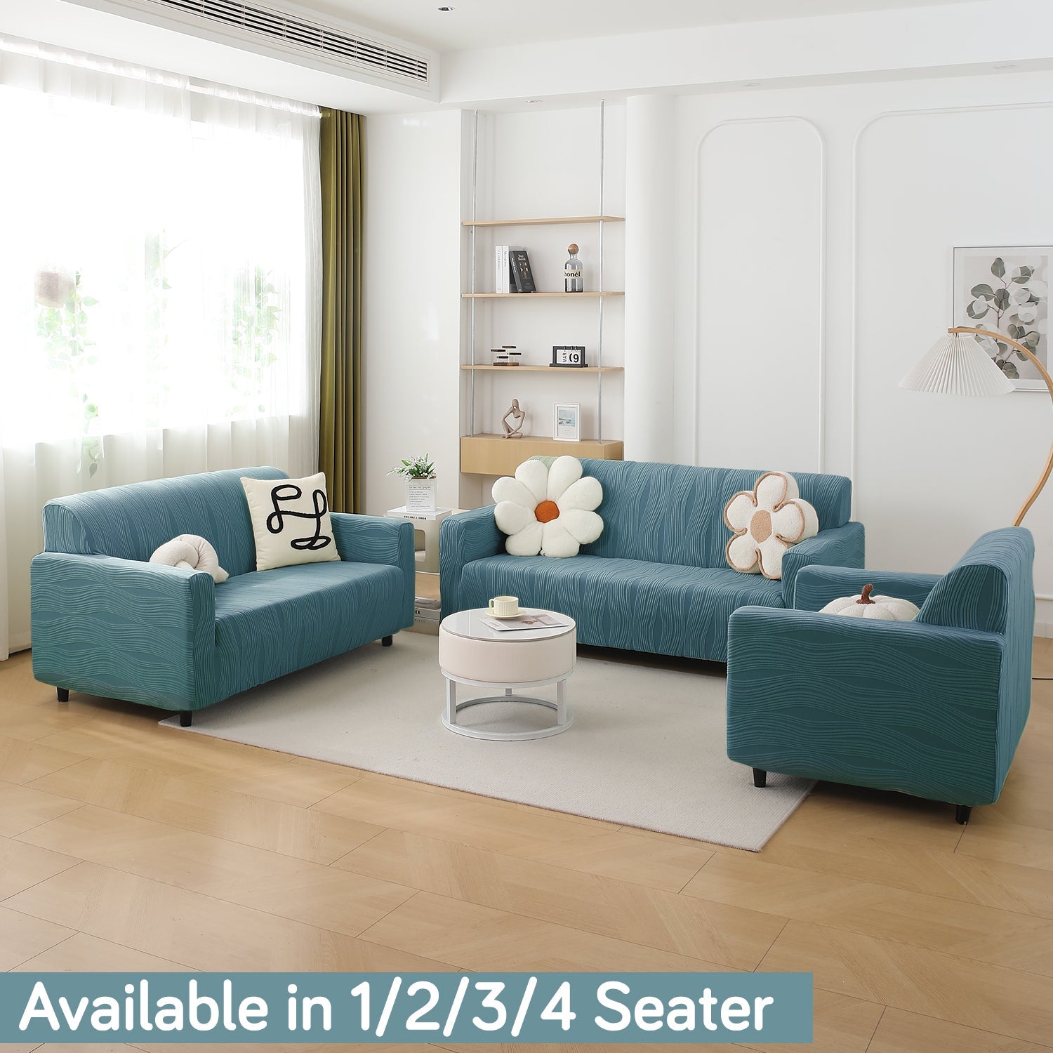 200gsm Knitting Jacquard Sofa Cover 1/2/3/4 Seater Fully Covered, Sea Blue