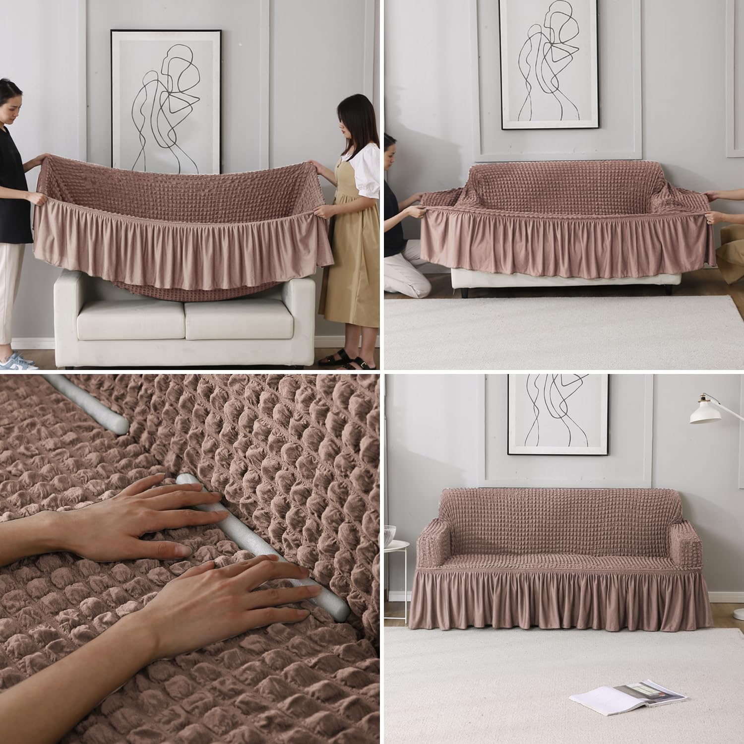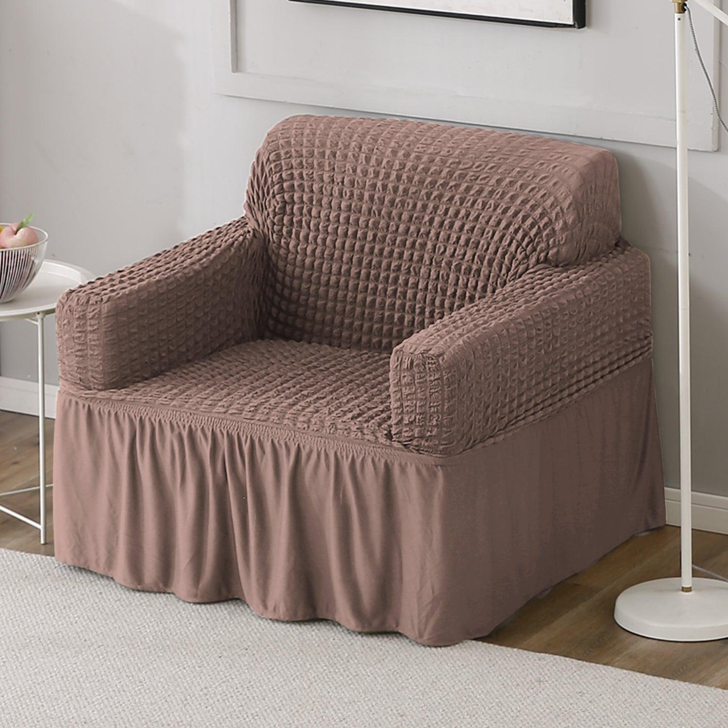 Elastic Stretchable Bubble Sofa Cover with Frill, Mocha