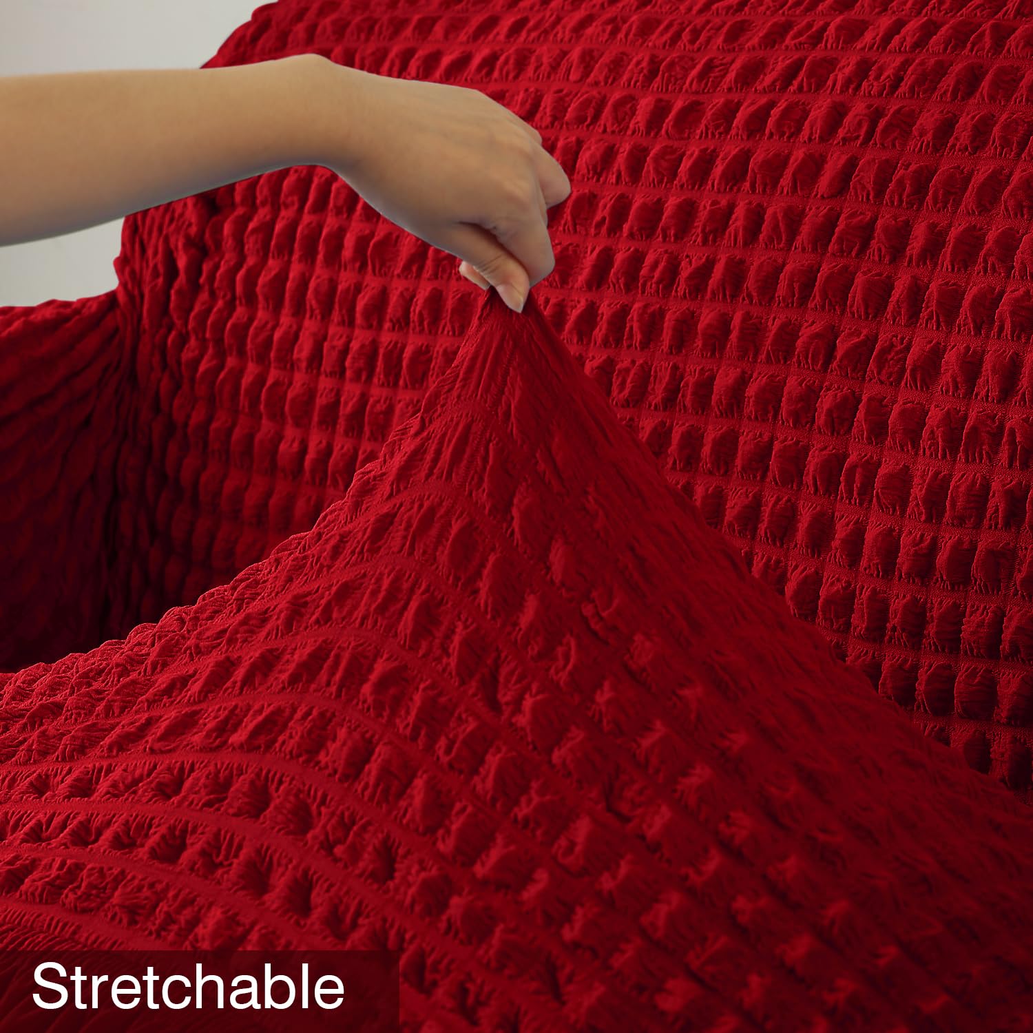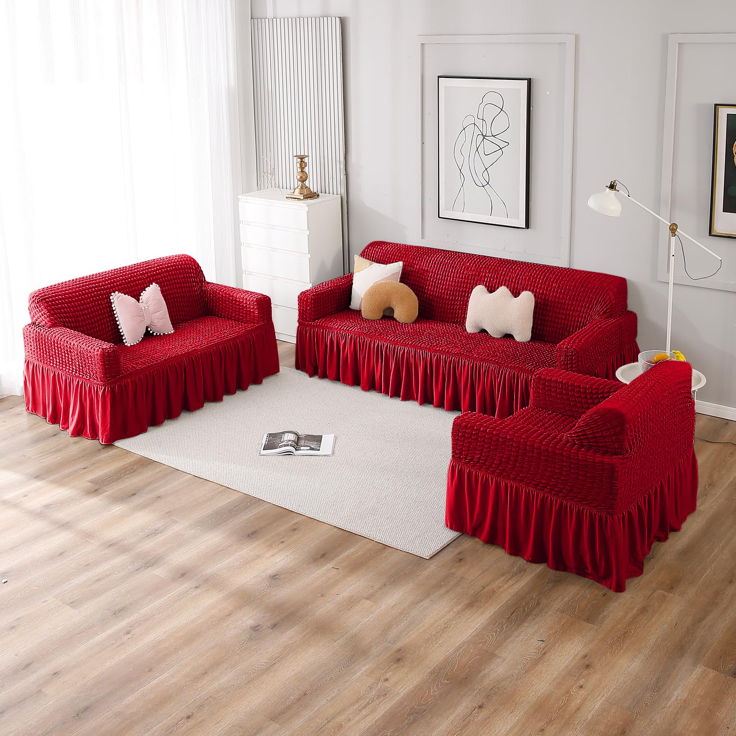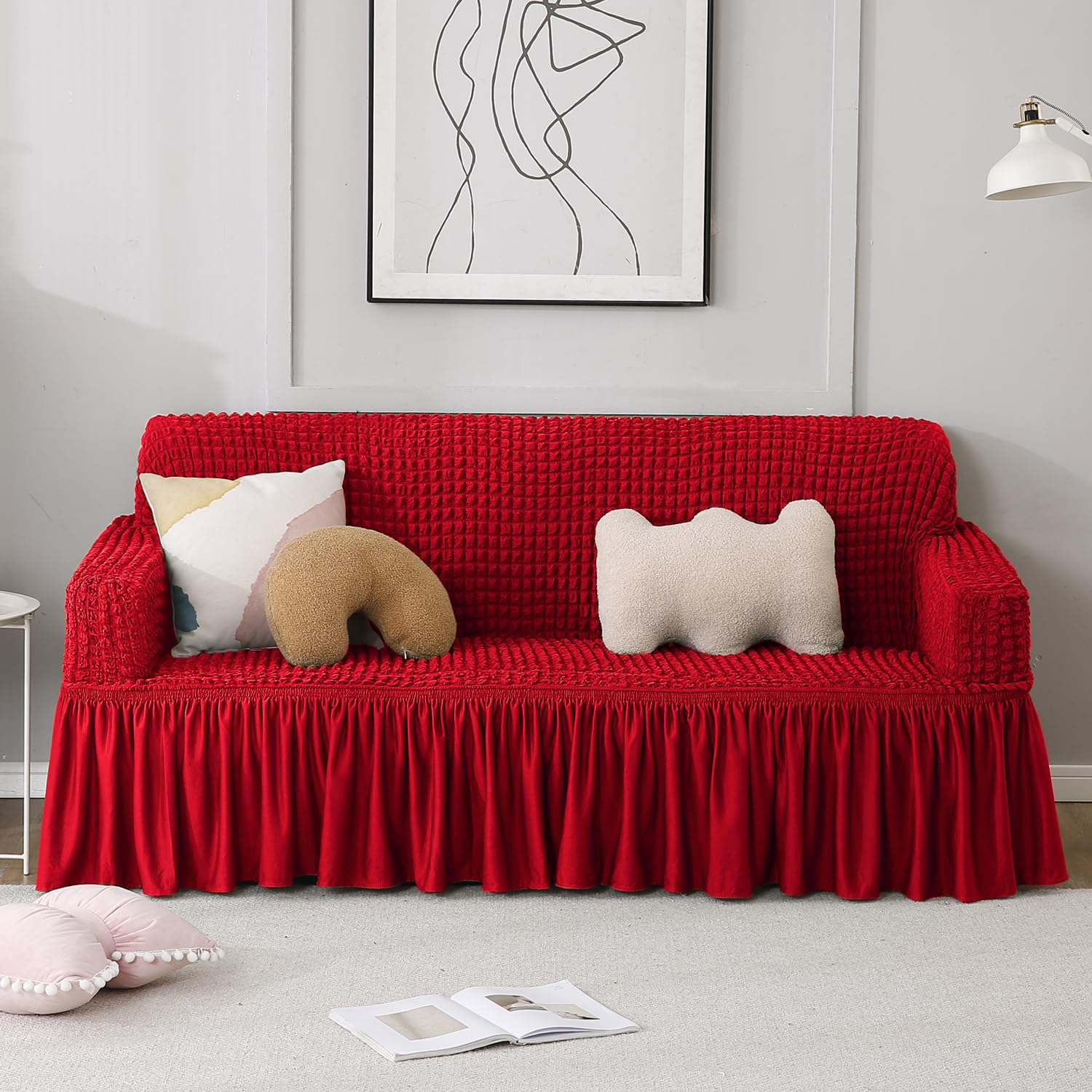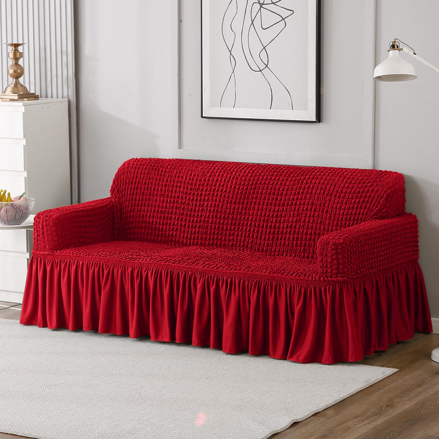 Elastic Stretchable Bubble Sofa Cover with Frill, Scarlet Red