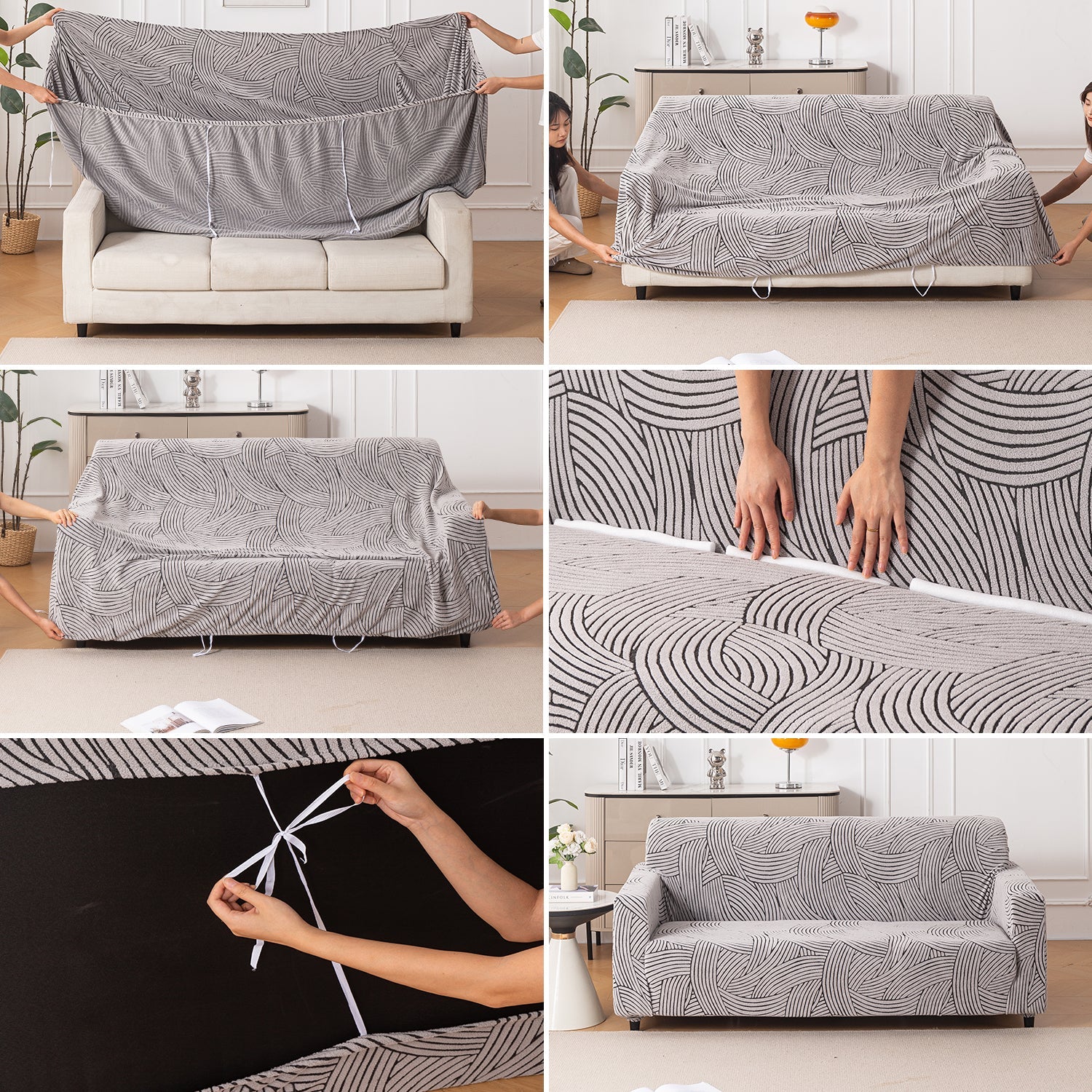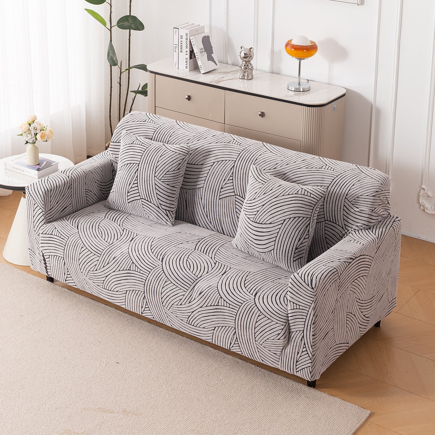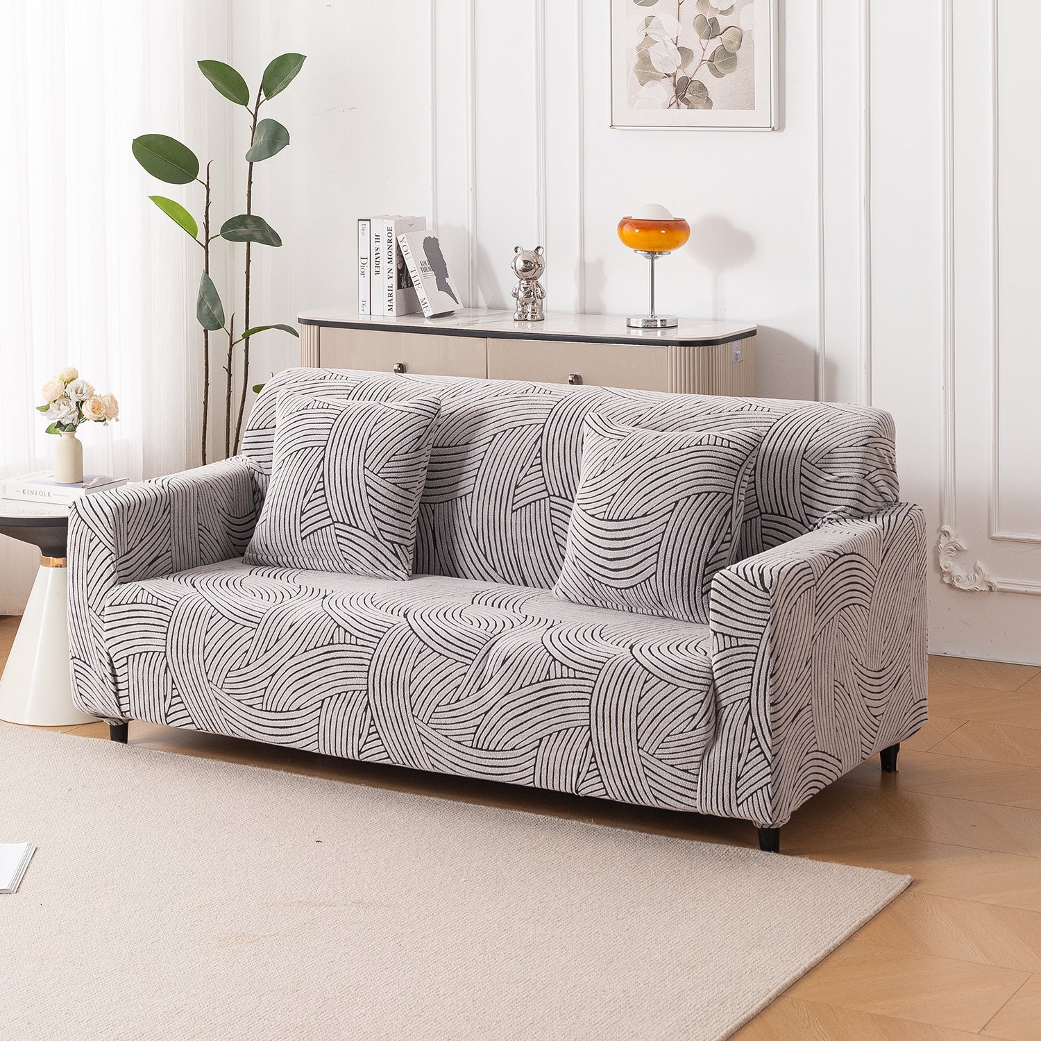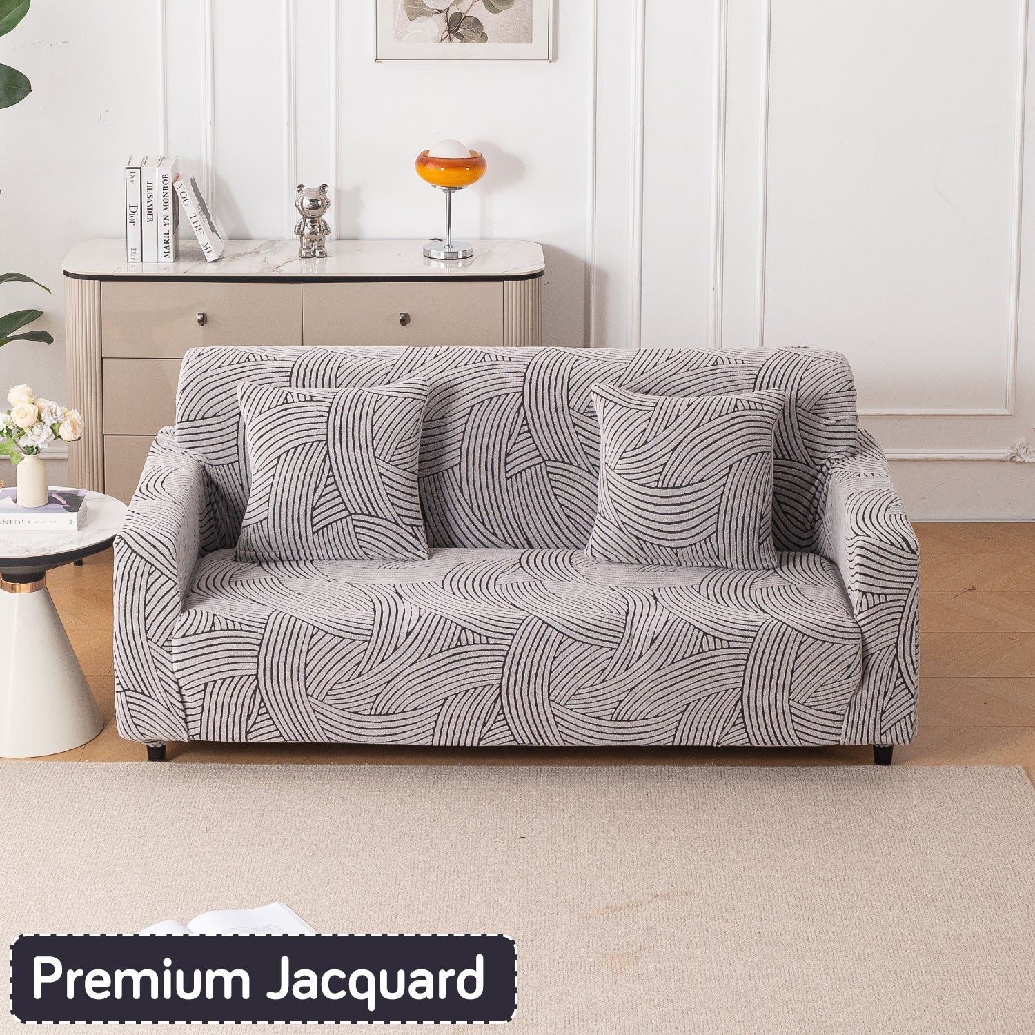 'WaveLine Series' Jacquard Sofa Cover 1/2/3/4-seater Fully Covered, Ash Grey