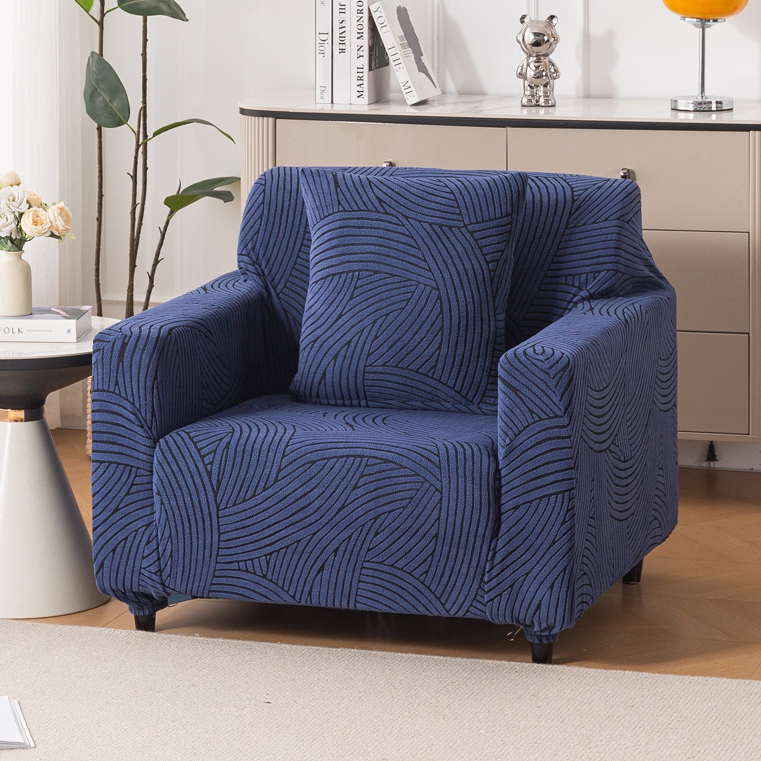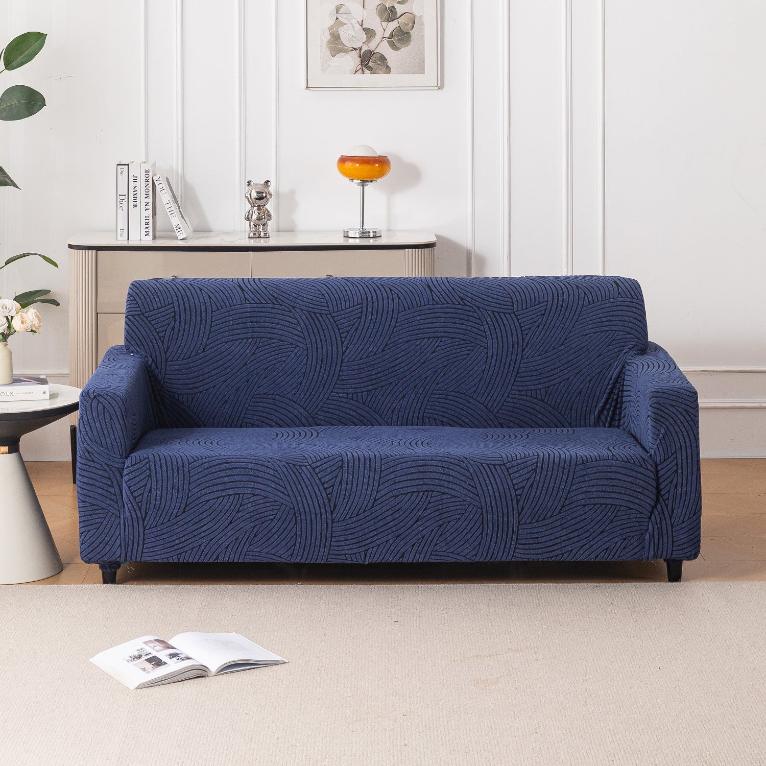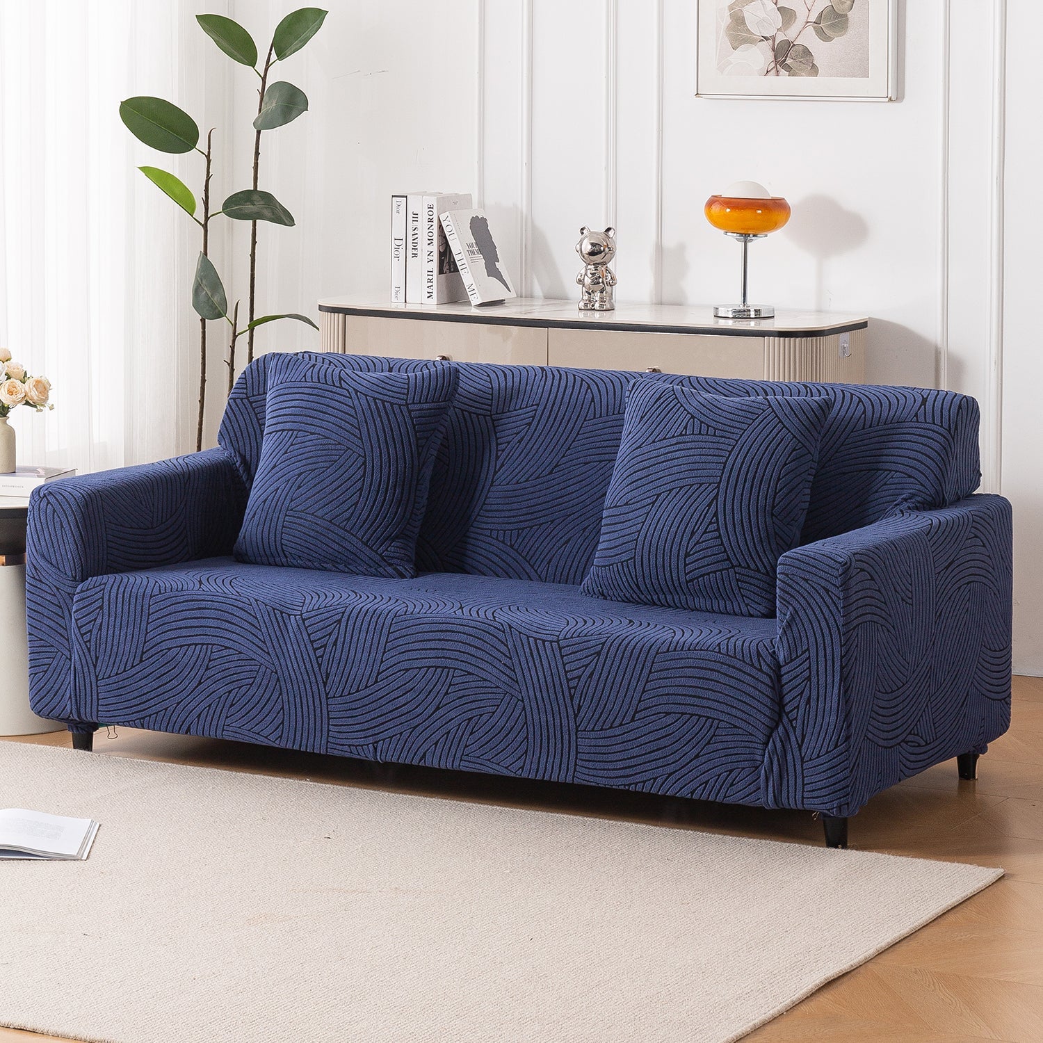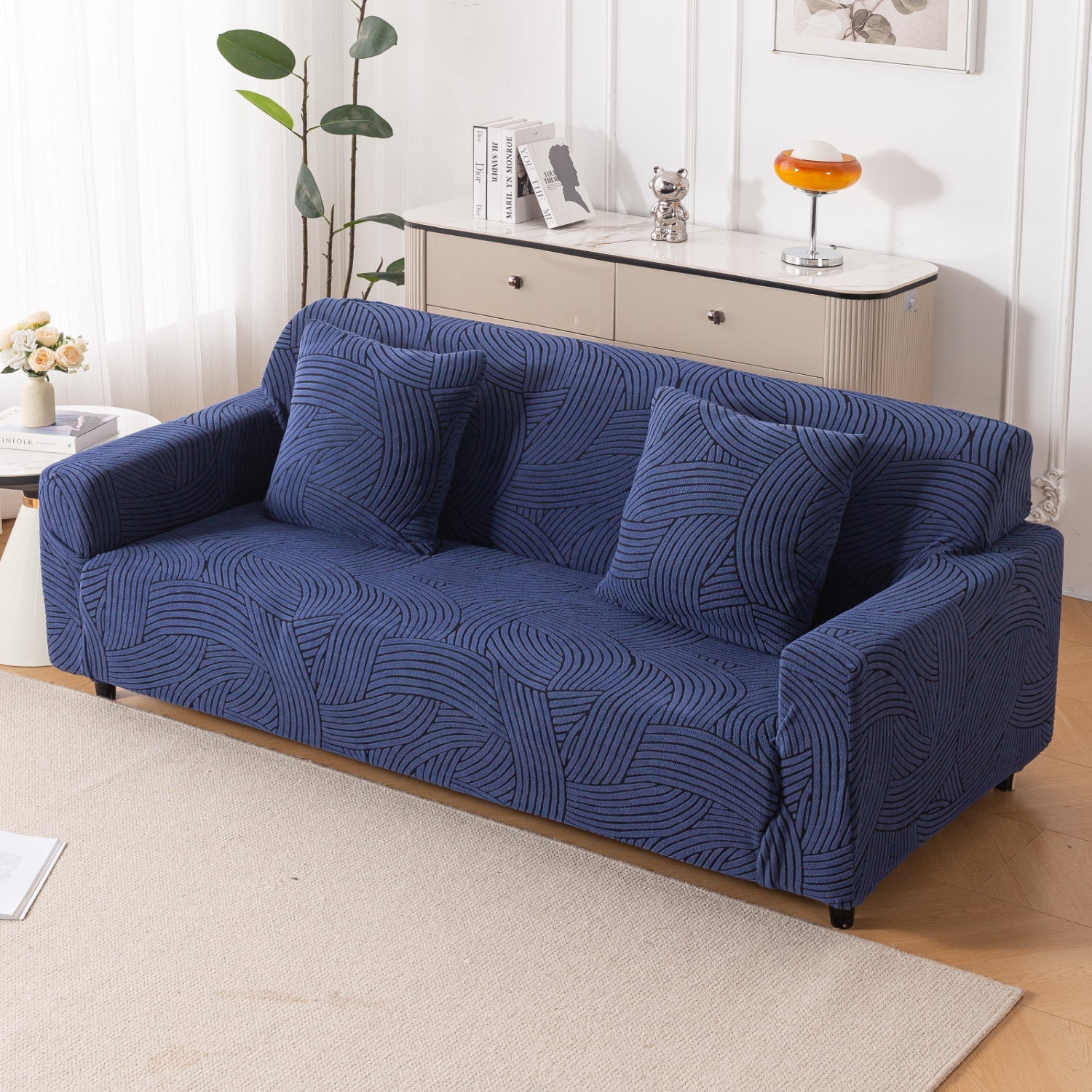 'WaveLine Series' Jacquard Sofa Cover 1/2/3/4-seater Fully Covered, Royal Blue